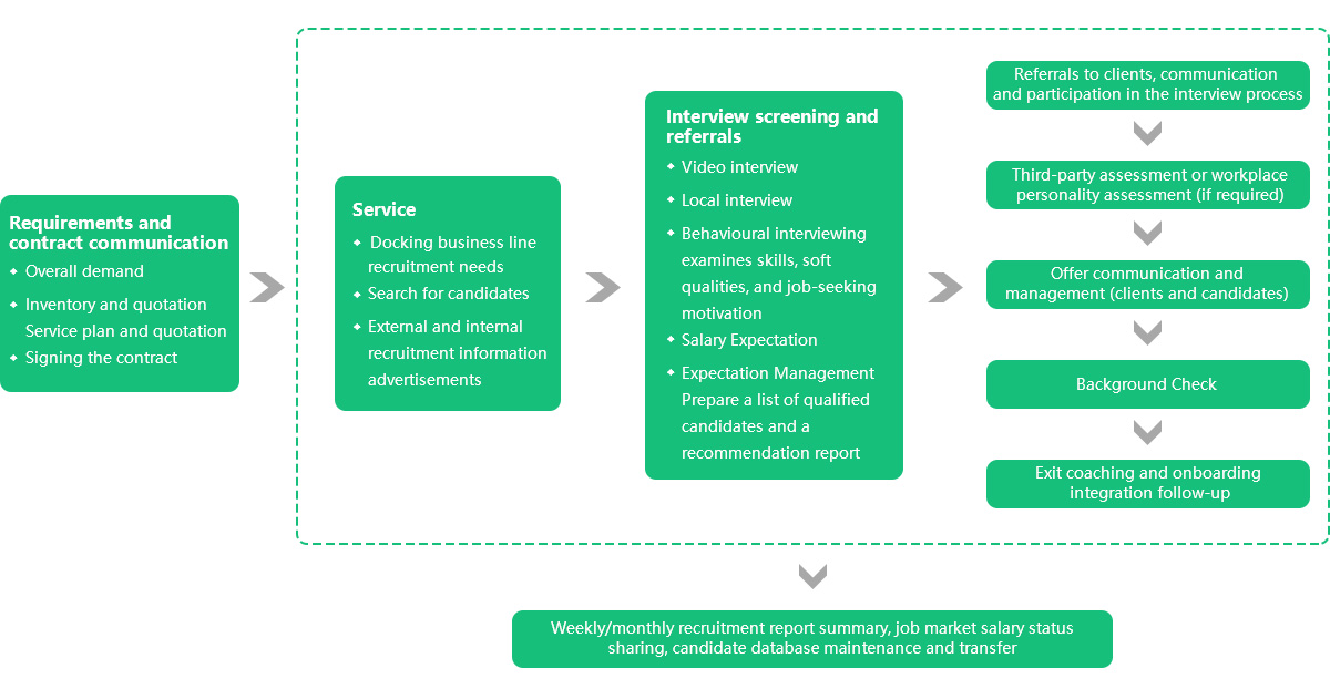 Overall recruitment outsourcing service, to solve the recruitment service of enterprises from middle and low-end talents to middle and high-level talents